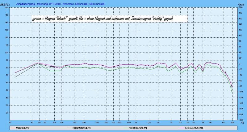 Was die Klangverbesserung durch einen Zusatzmagnet angeht, kann ich nur sagen: Der Wirkungsgrad im Mittel-Hochton-Bereich steigt ein wenig. Wenn ein Breitbänder da zu wenig Pegel bringt, kann sich das positiv auswirken. Wenn das nicht der Grund für die Klangverbesserung sein sollte, muss man diese Aussage in die Kategorie "Voodoo" einordnen.Admin