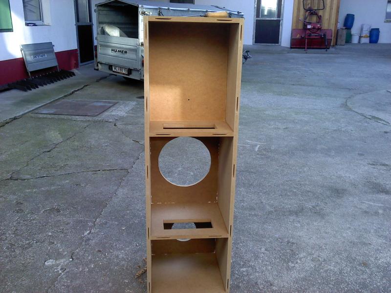 habe beide Kästen fertig geleimt und geschliffen, wenn das Wetter morgen schön ist lackiere ich sie schwarz. Die katen habe ich gebrochen, aber ich habe vorne keine Fasen gemacht (finde sie so schöner). Getestet habe ich sie noch nicht weil ich noch immer keine spulen haben aber bin am besorgen.