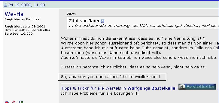 Dieses müßte der 10.002'te Beitrag sein, aber es ist erst der 10.001 ?!