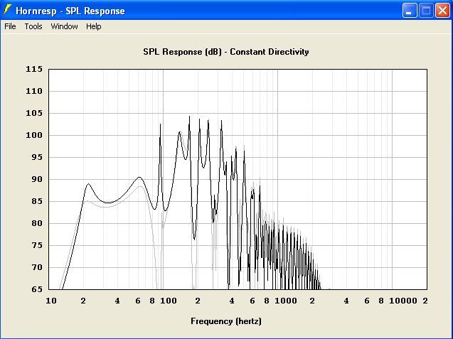 Für die, die es noch nicht wissen: Mit Export kreiert Hornresp ein Akabak-Skript, das kann man dann in Akabak ausführen, da ist die SPL-Darstellung dann etwas "gewohnter".