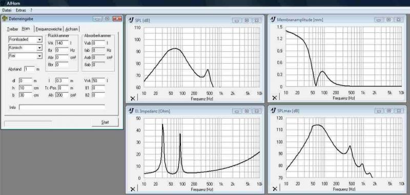 ich habe in AJHorn mit 300 cm² Mündungsfläche (30*10cm) und 200cm² Fläche am inneren Ende bei 30cm Kanallänge simuliert. Eine etwas tiefere Abstimmung ginge noch mit Verlängerung des Kanals bis 40 cm (bei gleichem Anfangs- u. Endquerschnitt) auf Kosten des Schalldrucks. Wie Timo schon schrieb ist der TIW 250 eben nicht optimal für Bandpass sondern besser für BR, aber ein Bandpass fällt zu tiefen Frequenzen auch nur mit 12dB/Okt. ab im Gegensatz zu BR mit 24dB/Okt. Haben die Proteus eine aktive Bassanhebung? Dann reichts bestimmt.