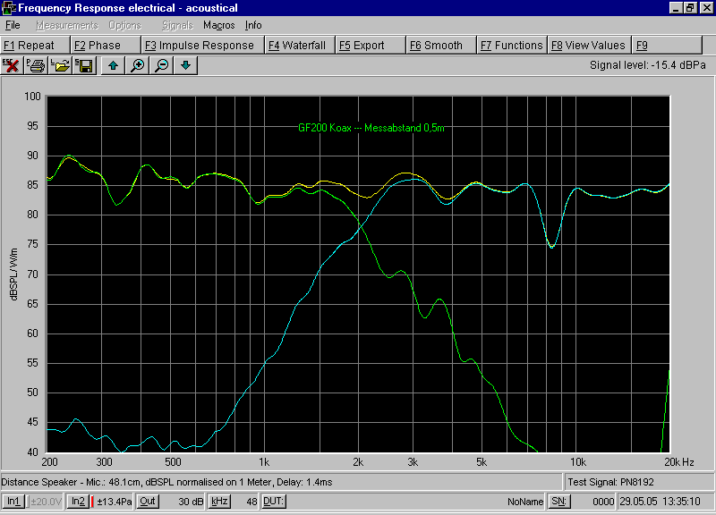 Leider habe ich in dieser Anordnung verschiedenste Probleme, zum einen macht der GF250 ab ca. 2 kHz erhebliche Schwierigkeiten, was wohl bei dieser Größe ganz normal ist. man müsste einen 24 dB Tiefpass vorsehen mit zusätzlicher Resounterdrückung.