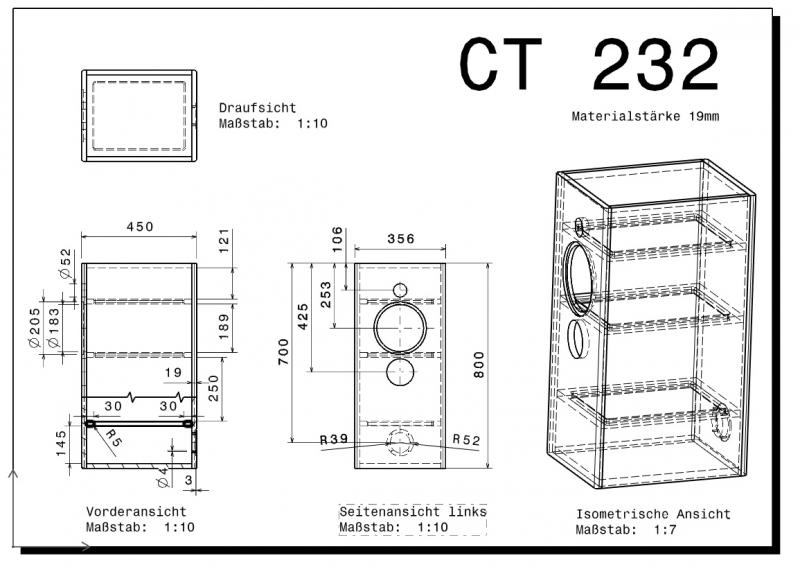 ich habe gestern nur die weiche vom bauvorschlag mit visaton-teilen umgesetzt. die weiche weicht daher etwas vom original ab. um die bassreflexabstimmung und das gehäuse habe ich mich erstmal nicht gekümmert (nur das volumen korrigiert - die box dürfte überschlagsweise 70 statt 100l haben.