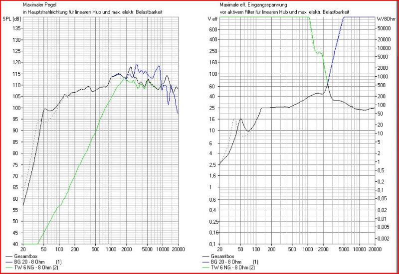 durch den 3,3ohm widerstand vor dem bg20 sinkt der schalldruck auf 75db - das kanns ja wohl nicht sein.