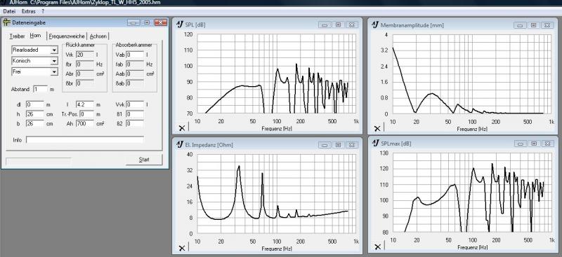 Deine DN300-Simu sieht ja vom Verlauf her schon sehr ähnlich zu der von hornresp aus. Nur die Amplituden passen überhaupt nicht, weil ich im Halbraum und nicht frei strahlend gerechnet habe.