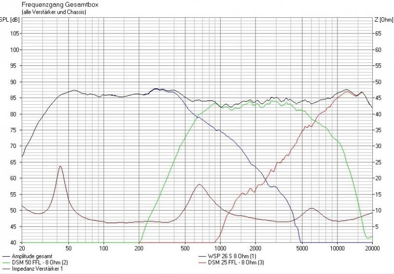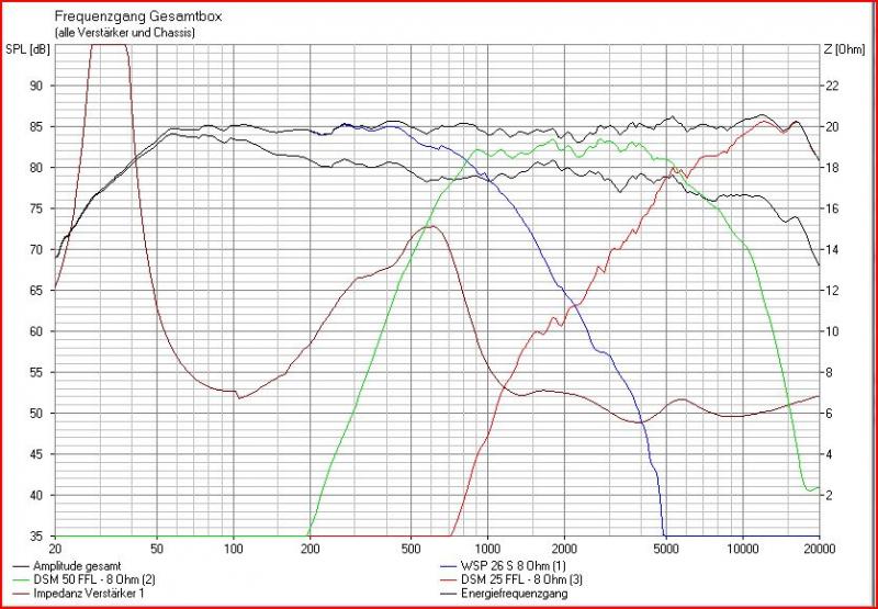 also anders rum: ich habe in Boxsim die Chassis in die vorhandene Box eingesetzt (ich denke die Maße stimmen so etwa) und die CasablancaIV-Weiche dazu. Da ist noch Raum für Verbeserungen, insbesondere der Übergang TT zu MT (Phasenlage). Ein TT mit noch mehr Wumms bringt hier übrigens nichts bzw. müsste dann noch höher getrennt werden da jetzt schon der DSM 50 der limitierende Faktor ist.Angehängte Dateien