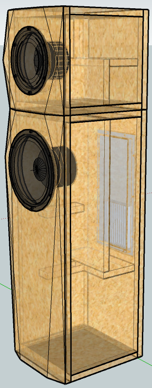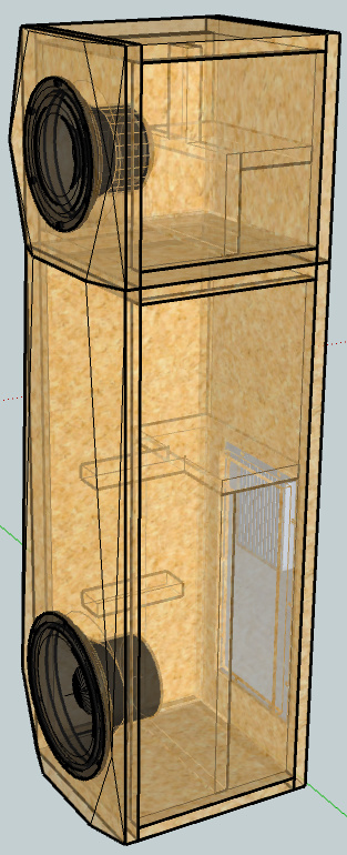 Laut meinen Simulationen mit WInISD und LspCAD 5.25 sollte der TIW200XS in diesem Gehaeuse gut sein fuer max. 95dB, mit Entzerrung & Raumeinfluss runter bis ca. 35Hz bei 3dB. Nach oben aktiv abtrennen bei 80-120Hz - muss ich dann noch genau raustuefteln. Linear viel weiter runter als 35-40Hz macht ja vermutlich ohne Equalizer nicht so viel Sinn - da kommt der Abfall der Geschlossenen Box wohl gerade recht.