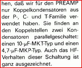 zu den Frequenzweichenbauteilen: Auch hier stimme ich dir prinzipiell zu, dass entscheidend ist, was hinten rauskommt. Aber: nicht im reflexionsarmen Raum, sondern am Hörplatz. Welchen Sinn hat es, eine schmalbandige Frequenzgangüberhöhung bei 300Hz mit einem passiven Filter aus drei Bauteilen geradezubiegen, wenn in eben diesem Frequenzbereich der Raum später Überhöhungen und Einbrüche von +-5db hervorruft. In diesem Fall spart man sich die Bauteile. Gehen wir davon aus, dass alles "schön linear" ist, dann schaden sie zwar nicht, aber sie verbessern auch nichts. Der Freifeldfrequenzgang ist nur im Mittel-Hochtonbereich ein Argument. Auch hier ist schon sehr fraglich, wie absolut die Frequenzganglinearität nun wirklich sein muss. Bei breitbandigen Überhöhungen ändert man natürlich den gesamten Klangeindruck, bei schmalbandigen Überhöhungen oder gar Einbrüchen ändert man ja nur den Anteil dieses ganz speziellen Frequenzganganteils, der im Gemisch überhaupt ersteinmal vorkommen muss. Ich würde - ohne mich jetzt konkret auf psychoakustische Untersuchungen zu stützen - behaupten, dass eine 1/3 Oktavbandbreite Frequenzgangabweichung von +-2dB zwar hörbar, aber nicht signifikant als "besser" bewertet wird. Also ist sie eigentlich auch schon egal. Das unterschiedet in den wenigsten Fällen ein gute, von einer schlechten Box. Eher geht es um die vielzitierten "Geschmacksunterschiede". An der alten Regel für passive Weichen ist nicht zu rütteln: so wenig wie möglich, so viel wie nötig. Wenn Timmi wirklich raushört, dass jedes Bauteil so sein muss, muss man ihm das als Entwickler wohl zugestehen.