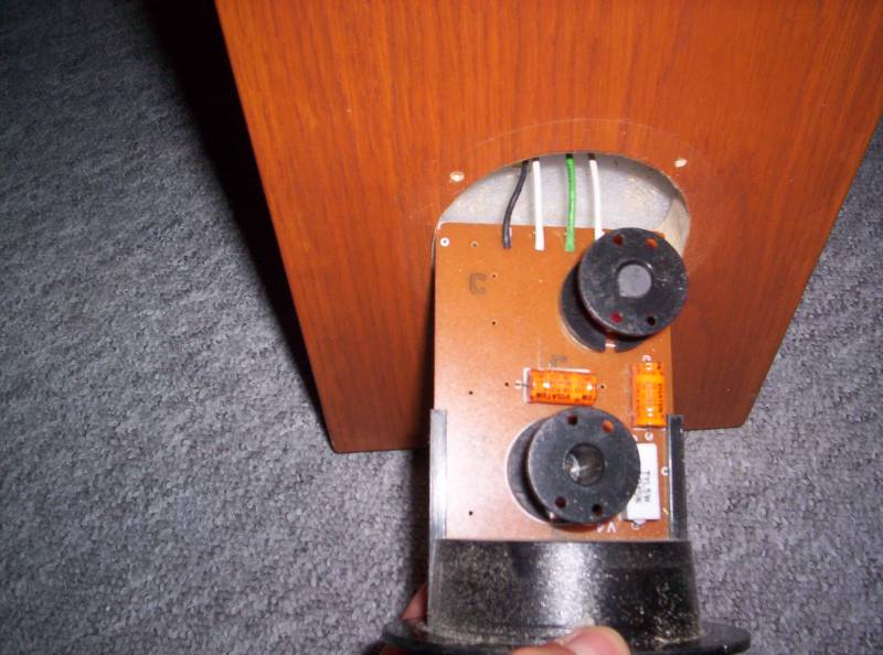 Auf der Weiche siehst Du zwei orangene Kondensatoren, das sind Visaton-Tonfreqenzelkos. Die Werte sollten draufstehen und lesbar sein.