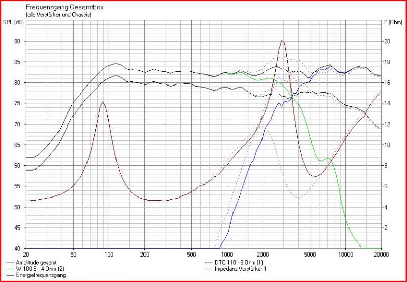 Wenn ich den Hochton weiter absenke ist der W100s zu laut im Übernahmebereich.