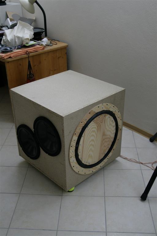 wollte noch einen kleinen vorgeschmack auf das kellerprojekt abgeben, ... anbei zwei bilder einer sehr rustikalen umsetzung einer passivmembran, ... angetrieben von vier mivocbässen, ... gruß timo