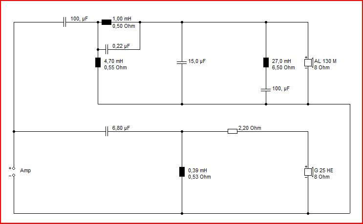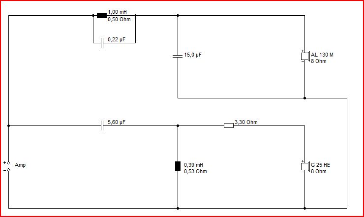 Vorteil der teilaktiven Variante: alles ist schon da- die Timo-Weiche müsste auf den G25He angepasst werden, aber der Bauteileaufwand im Vergleich zur reinen passiven Weiche wäre auf jedem Falle geringer.