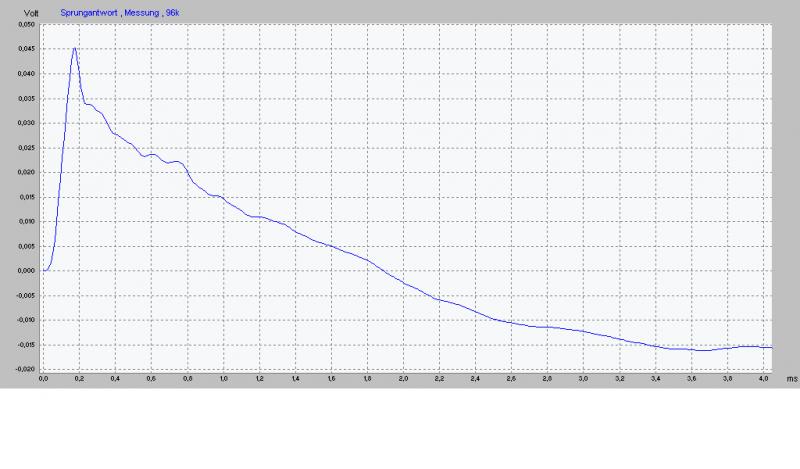 Aus der 3. Impulsantwort kann man keine Fehlkonstruktion herleiten, es zeigt lediglich das, was ich oben gesagt habe, daß der Hochtöner (und auch der MT) schon ein paar Perioden hinter sich hat, bis vom TT was messbares am Mikro ankommt.Zitat von boxworld Beitrag anzeigenHallo Peter,