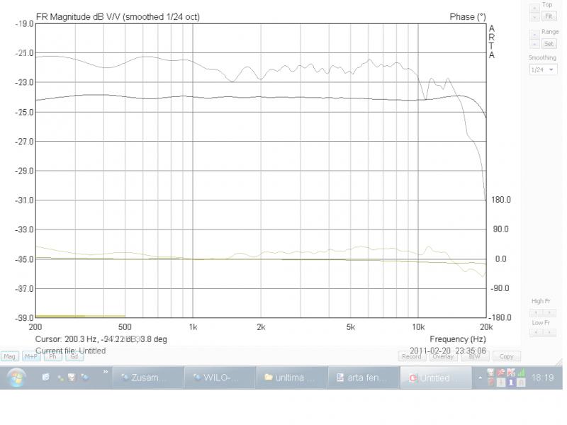 In dem Diagramm mit dem Frequenzgang ist unten blas noch die Phase zu sehen, beide korrekt gefenstert, einmal Loop und gemessener Lautsprecher.