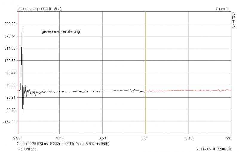 in dem Diagramm oben ist ein direkter Vergleich zwischen Loop und Messung, lediglich die Startzeiten unterscheiden sich weil ARTA den Mikrofonabstand nicht kennt. Es aendert sich aber lediglich der Startzeitpunkt, nicht der Verlauf.