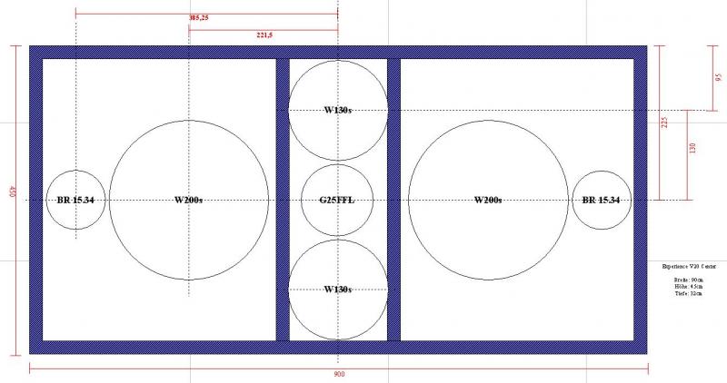 Gehäusemaße wie auf dem Bild, Volumen wie die original V20. Bestückung ebenfalls original mit dem 8 ohmigen G25FFL. Muss ich die aktuelle Weiche abändern?