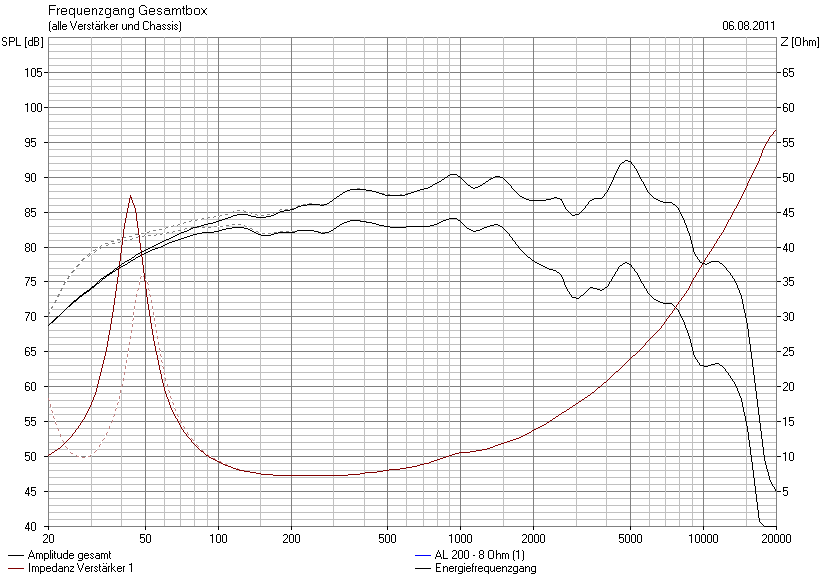Im Anhang gemessener Frequenzgang der geschlossenen Box am Hörort. Mehr braucht man nicht für Musik. Bei 29 Hz schwingt mein Hörsessel mit. Und vieles mehr. Der Raum hat 45 m²!