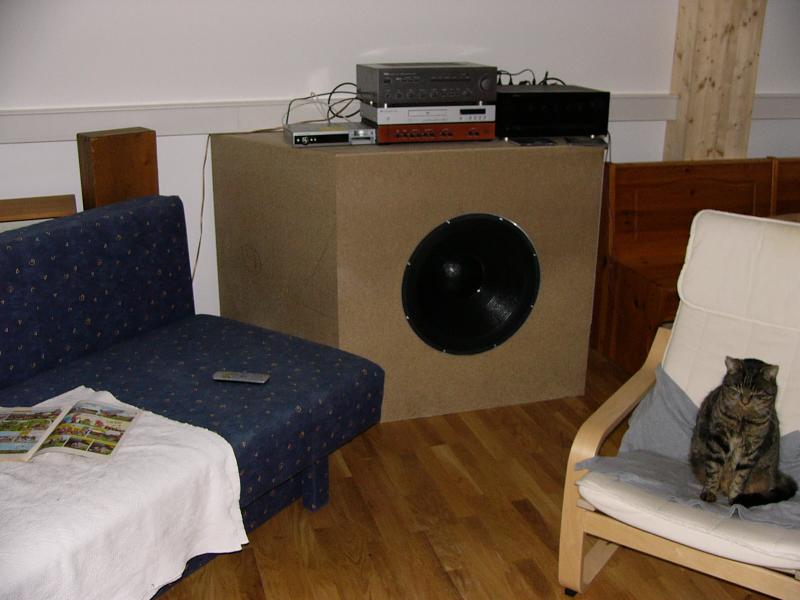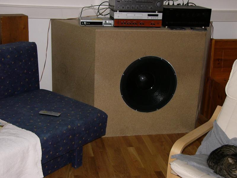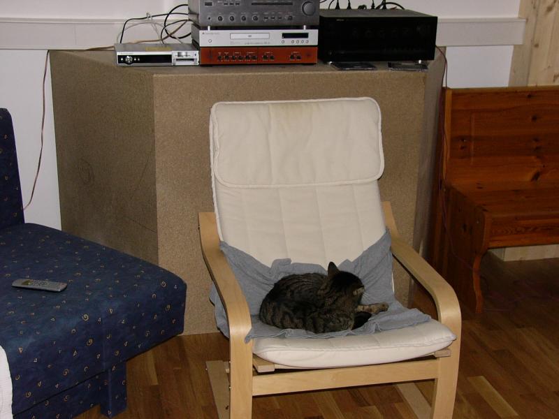 Ich hab einen gelernten Tischler gefragt - Herr der Ringe aus dem HiFi-Forum- wie er wo denn da ein Kiste biblischen Ausmaßes hinbauen könnte. und er hat nach einigem Nachdenken gemeint, das ginge mit vertretbarem Aufwand sowieso nur an der Wand hinter dem Hörsessel, dort wo vorher das Rack der Anlage stand.