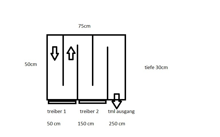 Dein Rohentwurf denke ich muss dann bezüglich der Einzelmaße auch noch leicht korrigiert werden. Die angegebenen 50 cm und 75 cm stellen lichte Innenmaße dar, oder?