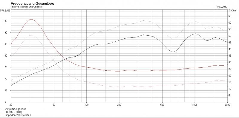 Die Simulation zeigt übrigens den - durchgängigen - Pegelverlust wie gemessen, siehe Anhang (Visaton TL10/B50 ohne und mit 12 Ohm Vorwiderstand 1: freeair 2: in 15L CB).