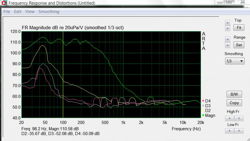 In beiden Fällen muss jedenfalls mit einem Tiefbassverlust von ~6 .. ~10dB gerechnet werden. Dementsprechend vergrößert sich allein daraus der Klirrfaktor (Verhältnis von Oberwellen zur Grundwelle) auf das 3-fache. Wird der Eingangspegel um die verlorenen 10dB angehoben, um auszugleichen dürfte sich wegen des explodierenden Hubs ein nochmals übleres Bild ergeben.