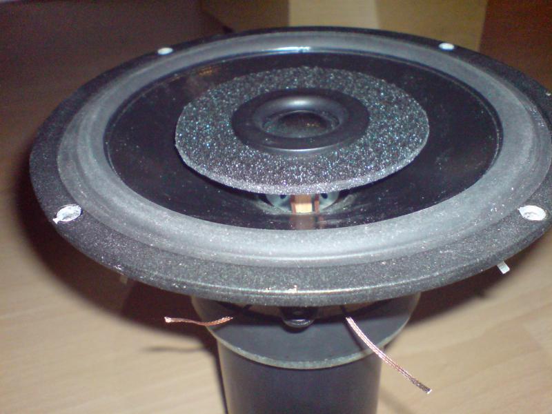 Brummbär, deine Schaumlösung funktioniert bestimmt auch gut. Wenn du noch mal experimentieren möchtest, würde ich dir raten das gesamte Volumen innerhalb des Schwingspulenträgers aufzufüllen und nur einen kleinen Luftspalt von 0.5mm zu lassen. Durch den dünnen Holzstab (wenn ich das auf dem Foto richtig erkenne) kommt es zu einer Saugresonanz, weil der Luftzylinder einen Helmholzabsorber bildet.