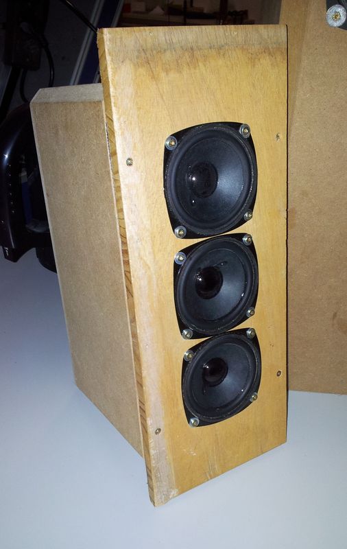 Der mittlerste FRS8M fullrange und die äußeren nur mit einer Spule als Tiefpass getrennt, eventuell mit Sperrkeis für den Mitteltonbuckel.