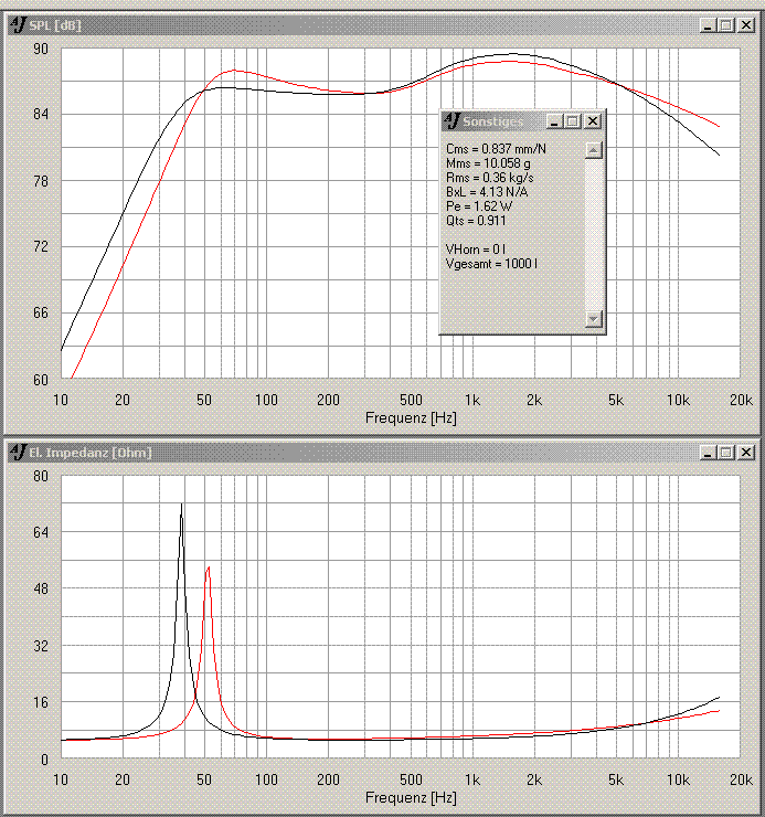 ). nimmt man das nicht ganz so genau, reicht für den b200 auch ein kleineres gehäuse: der buckel rutscht nach oben, und die interferenz, die den beseitigt wird durch einen geringeren wandabstand nachgeschoben ... das alles vor dem hinterngrund, dass "der raum" im allgemeinen für +/-10db scharfkantige frequenzgangfehler im tiefbass gut ist.