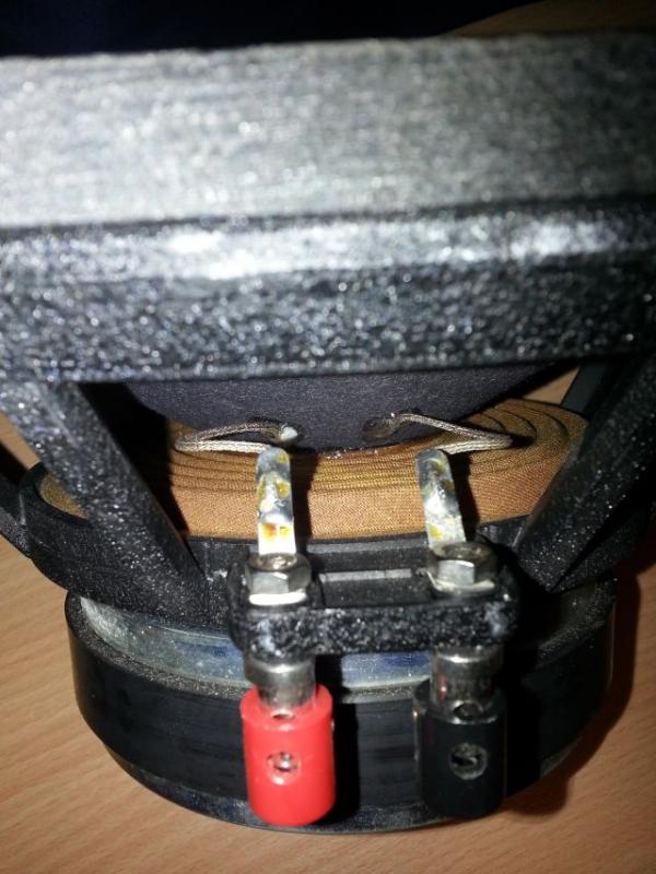 Er klingt gar nicht mehr. Den Lautsprecher habe ich in die andere gleich Lautsprecherbox eingebaut und festgestellt, dass das Problem genauso da ist. Der andere TIW Bruder spielt in beiden Boxen ohne tadel. Der gemessene Spulenwiderstand beträgt 6,4 Ohm und die gemessene Schwingspuleninduktivität 1,5mH. Die TSP lt. Katalog sind RDC Widerstand 5,8 Ohm und die Schwingspuleninduktivität 2,35mH.