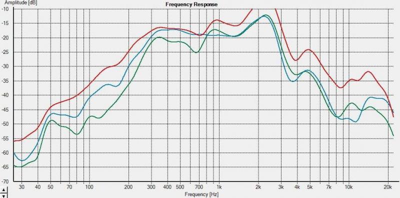 auffällig ist eine frequenzgrenze, nämlich bei 300hz, an der sich ein übergang von dipolig (resp. "super"kardioid) zu kardioid abzeichnet (ohne abb). wie weiter unten im thread erläutert ist der übergang zu beseitigen, indem mehr dämpfung eingebracht wird. das führt aber zu nicht-linearitäten, die für mich derzeit nicht beherrschbar sind. die dämpfung produziert starke dritte harmonische, deren aufkommen mit steigendem pegel unüberhörbar wird. neben den handwerklichen problemen ist in beiden fällen ein equalizer erforderlich. der ausgleich des dipol-üblichen pegelverlusts durch verstärkerleistung überfordert das vorhandene gerät schon bei mittleren lautstärken. "allgemein verfügbar machen" ist deshalb wohl kaum möglich oder sinnvoll.
