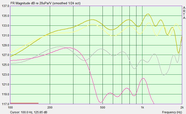 Kann leider kein Overlay machen, daher die Einzeldiagramme, bei 1000 Hz abgeschnippelt........