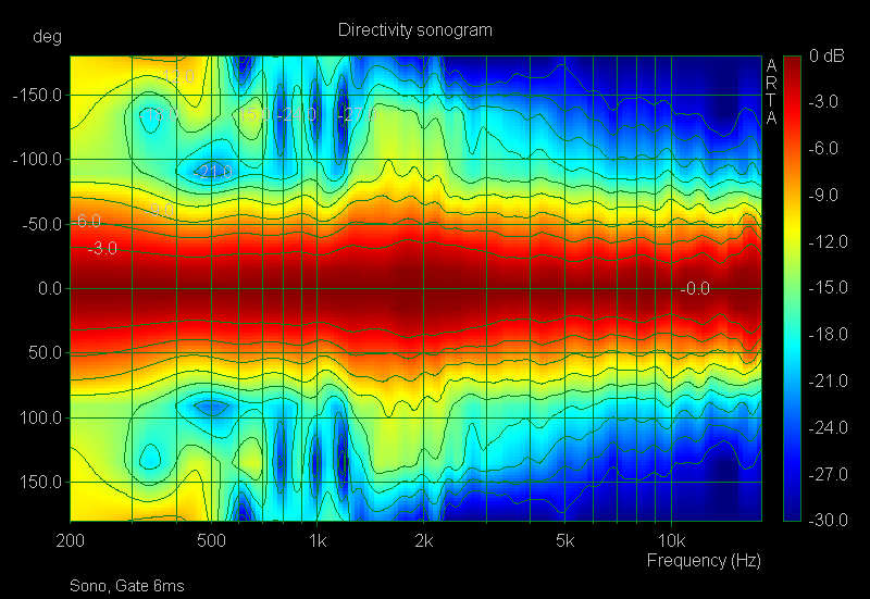 die verminderte abstrahlung insbesondere unter 60° erscheint attraktiv. dafür ist ein wandabstand von 50cm als minimum anzusehen. größere abstände kommen aus wohnlichen gründen nicht in frage. inwieweit die 60°-abstrahlung die ersten reflektionen oder doch (nur) das diffusfeld betrifft, hängt von der wohnsituation ab. im ersten fall ist der gewinn von rund 3..4db gegenüber einer (simulierten) geschlossenen ganz ordentlich. wenn es um das diffusfeld geht, kann die stetigkeit verbessert werden - ob das aber bei der gegebenen verschiedenheit der wohnlandschaften eine wesentliche rolle spielt?