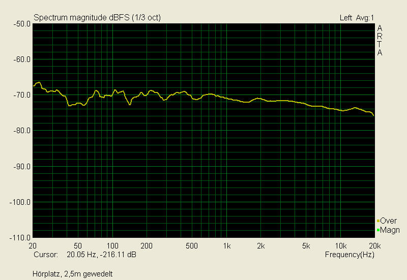 Messentfernung 1,5 m, Freifeldbedingungen, ungeglättet, Messgrenze knapp unter 100 Hz....