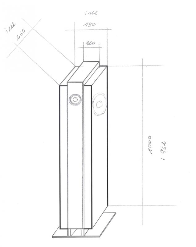 Das Gehäuse sollte eine 12cm breite und 19mm hohe Aufdopplung bekommen in die der FRS 8 (natürlich mit entsprechenden Volumen) eingebaut wird.