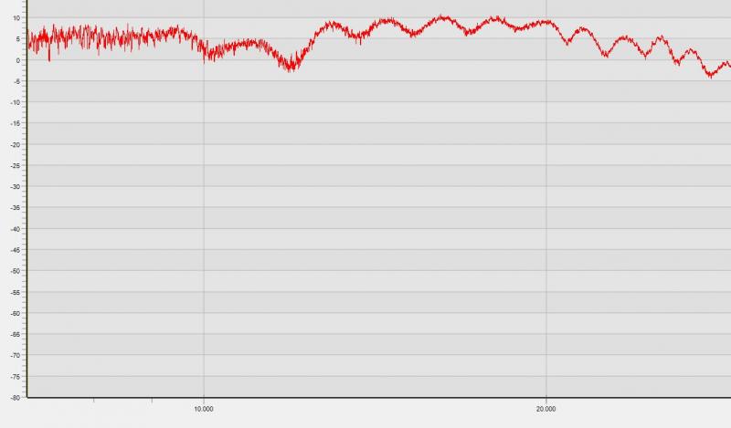 Wir haben an unserer Drehvorrichtung ein fest installiertes Mikrofon. Dieses hat während der Messung Probleme gemacht, so dass wir unser "Standard-Mikro" an dem fest installierten fixiert haben (ein Austausch war leider nicht möglich). Eigentlich hatte ich genügend Abstand vorgesehen und die Kapsel auch etwas versetzt angebracht. Dennoch sind Auswirkungen ab etwa 6000 Hz erkennbar. Ich führe die Messreihe nochmal komplett durch und veröffentlich das wieder.Admin