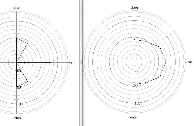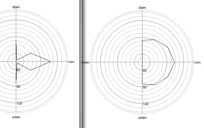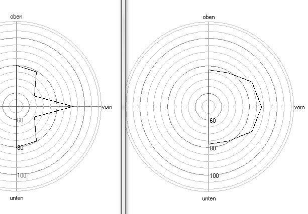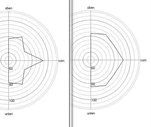 Von beiden Varianten wurden die vertikalen Polardiagramme gespeichert.