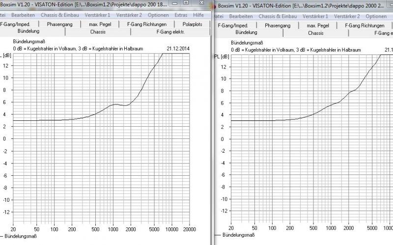 Für Boxsim ist meines Wissens schon seit Jahren bekannt, dass die Winkelsimus über 30° nicht mehr besonders genau sind. Und Xdir kennt keine Treiberdurchmesser - hält also 'nen Woofer für eine Punktquelle. Auch bei 9 cm Wellenlänge und 13 cm Treiberabstand. Wie soll das gut gehen?