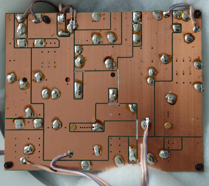 Ist die Anschlussbelegung auf den Bausatzfertigweichen nicht eindeutig beschriftet?Die Anschlüsse an den Kupferflächen der Platine habe ich mehrfach überprüft. Leider ist der Stromlaufplan durch den "eigenartigen Aufbau" der (Universal ?)-Platine sehr schwer nachvollziehbar.