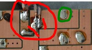Ganz links sind die billigen Lötanschlüsse ohne Beschriftung, die bei zu langem löten auch mal abgehen können.