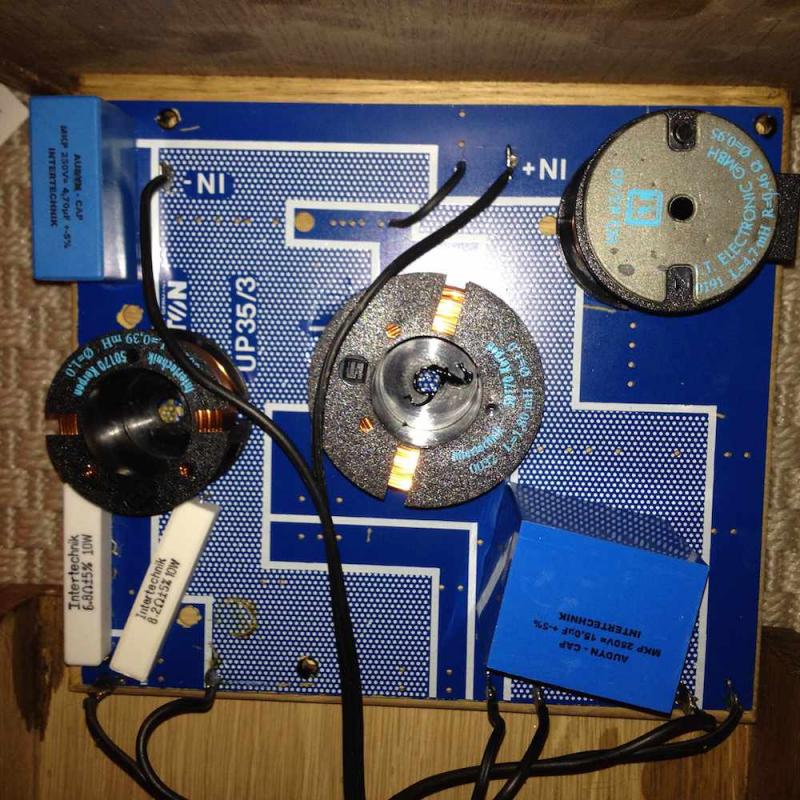 Dort kriegst auch die ganzen anderen Teile, falls du die Weiche jetzt komplett neu machen willst. Die Kondensatoren würde ich auch tauschen. Der orangene ist nen Elko - wenn der älter ist, kann sich der Wert verändert haben