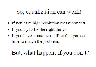 falsch. Minimalphasige Raummoden schwingen genauso schnell ein wie ein IIR-Filter gleicher Güte und lassen sich somit sowohl im Pegel als auch in der Phase (= Zeitverhalten) mit DSP eliminieren. Bei "verschmierten" = nicht minimalphasigen Raummoden geht das nicht ganz so gut, aber es ist immer noch eine große Steigerung an Klangqualität zu erwarten.