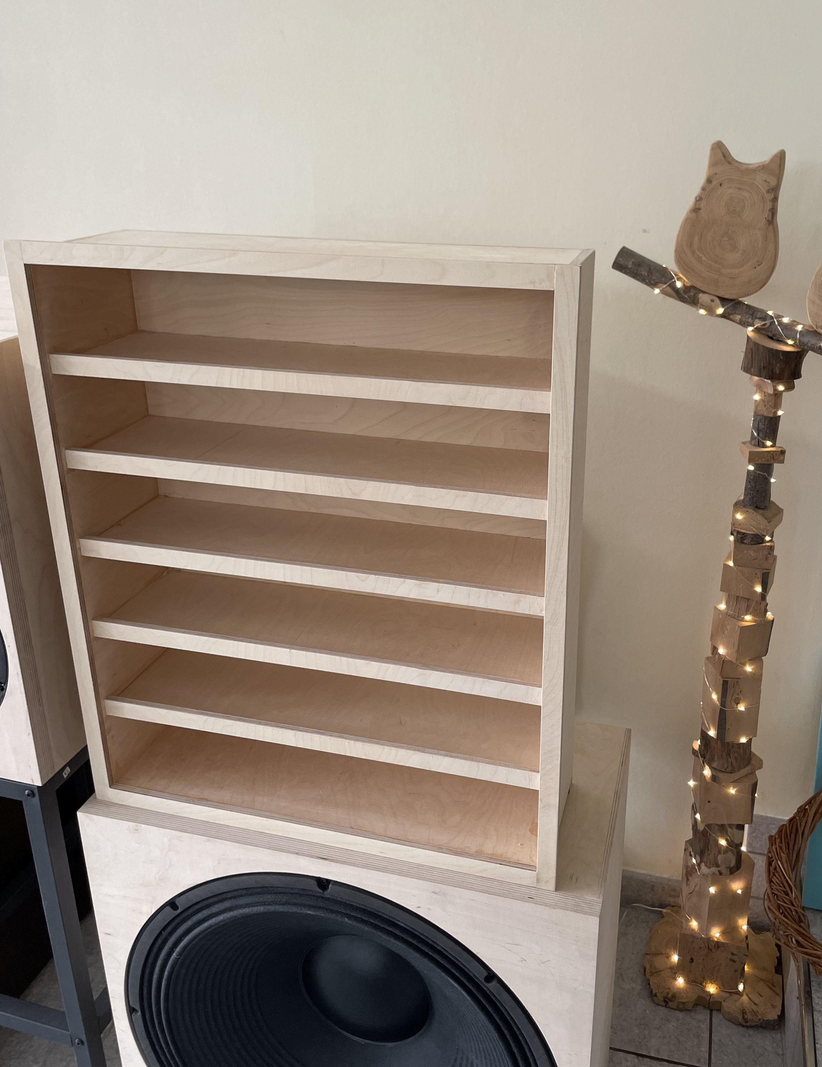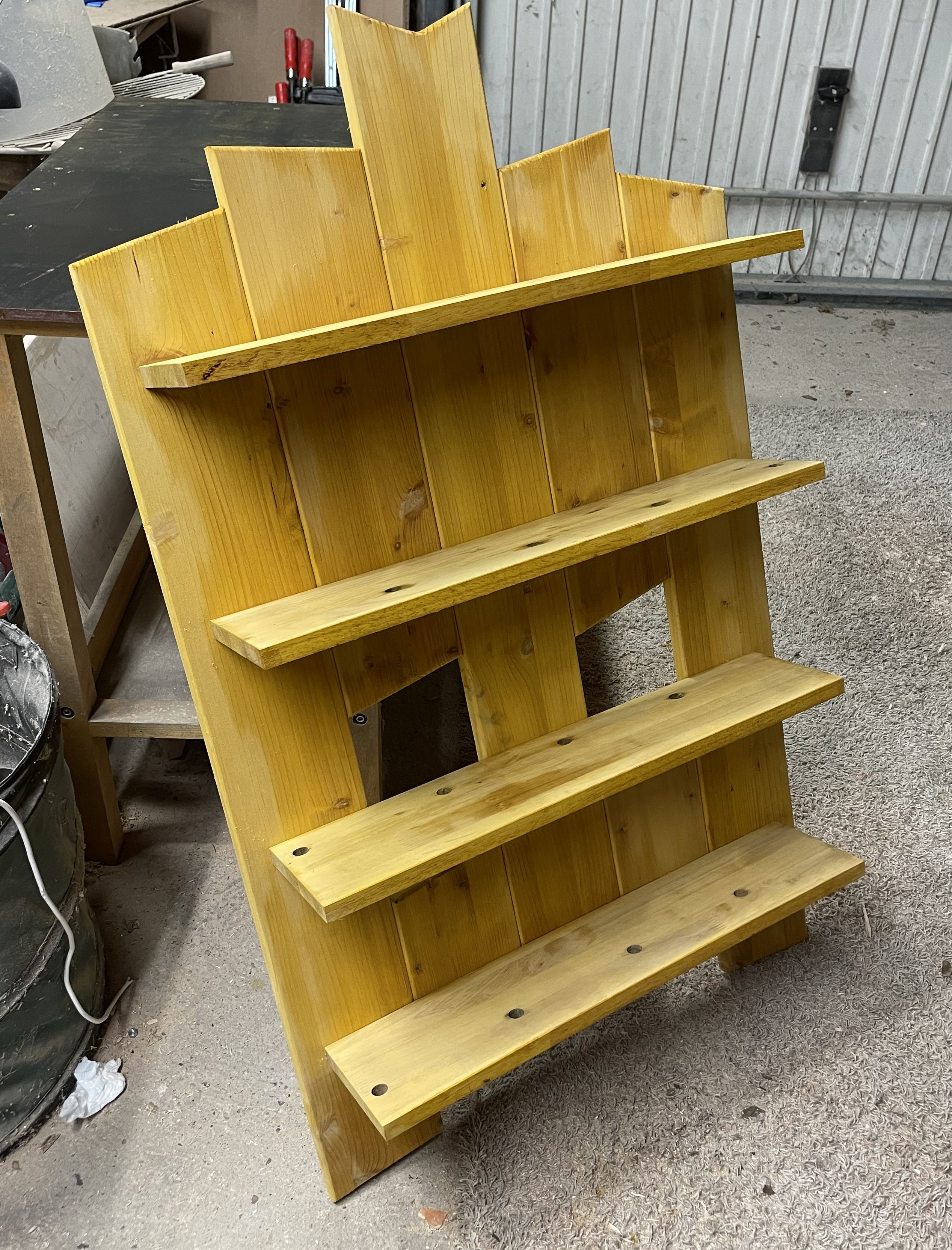 kleine Nebengeschichte, meine Nachbarin mit einem Zwillingspärchen als Kinder, wollte für das Mädchen einen "Stifte"-Regal, ... da sie sowas in der Art nicht findet hat sie mich gebeten so etwas zunächst zu zeichnen und zu fertigen, ... dieses Regal ist als Aufsatz für den Schreibtisch gedacht, mit kurzen Regalböden für hunderte von Stifte, (die das Mädchen anscheindend sammelt. Dieses Regal ist aus MPX 9 mm Birke gebaut und hat an den Regalböden vorne einen 20 mm hohen "Runter"-Rollschutz. Kurzerhand habe ich als Rahmen auch dieses Designelement aufgegriffen und so finalisiert.