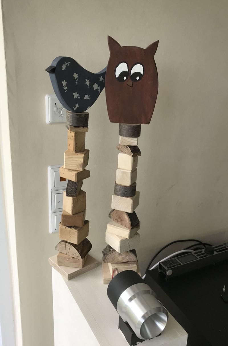 ich habe mir aus einer wirklich alten Stichsäge für meine Werkstatt einen einfachen Dekupiertisch gebaut, und gleich mal ein paar Herzen ausprobiert, einfach mal eine einfache Form mit konvexen und konkaven Formen, und was macht meine Freundin draus? Sie gibt mir aus dem Internet ein Bild, bitte mache mir das (Katze). Und was macht ein guter Lebenspartner um sie zufriedenzustellen, man baut es nach. In diesem Fall habe ich die Mechanik drunter gemacht, sprich die Weich- und Hart-Hölzer aus Abbruchholz zurechtgesägt, gebohrt und montiert, und Uli hat es dann beschichtet, … viel Spaß damit.