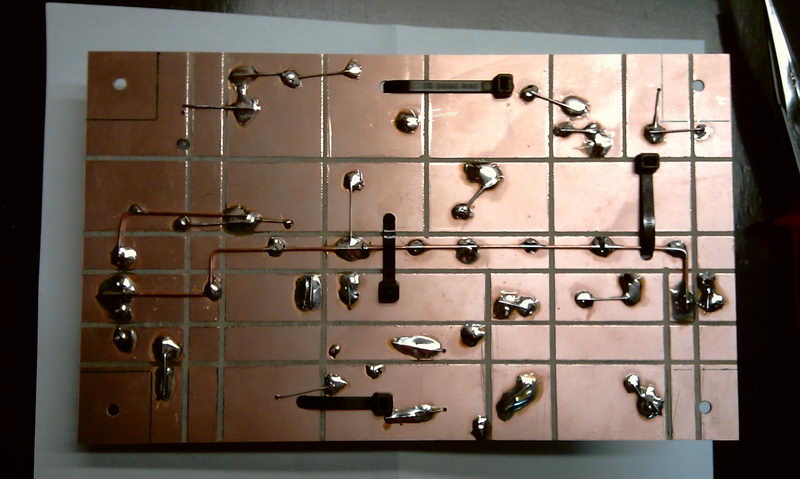 Der 100 Ohm Widerstand ist ein 11 Watt Typ. Alle Widerstände schweben 6 mm über der Platine.