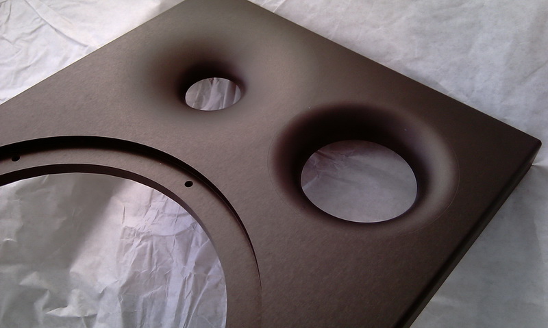 Jetzt weiß ich warum der Karton so schwer war, aus dem vollen Alu gefräste Schallwände. Da ist irgendwo lange eine Maschine gelaufen....