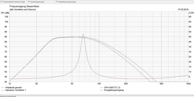 Noch schöner wäre ein Chassis für CB geeignet, welches in einem ähnlichen Volumen eine Einbaureso bei ca. 55-65Hz erreicht, welches etwa der doppelten Freiluftreso entsprechen sollte, bei einer Einbaugüte von 0,5-0,7 (sagt jedenfalls Klippel).