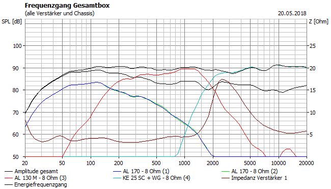 Übrigens kann man ohne Weichenänderung die Al 170 durch die Al 200 ersetzen, das Volumen muss dann verdoppelt werden und das Gehäuse zumindest im unteren Bereich auch. Leider begrenzt der (eine) Al 130M den Maximalpegel.