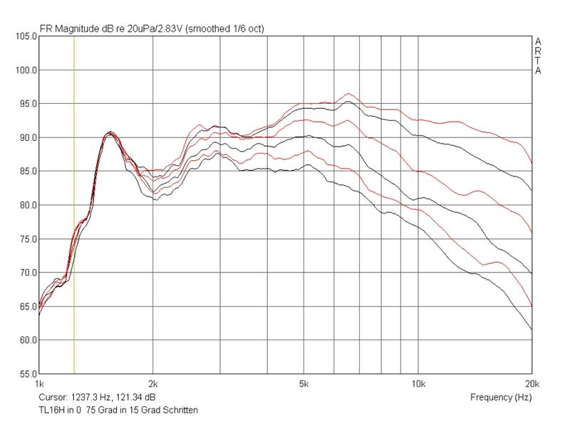habe meine TL16H mal unter Winkel gemessen, auf dem Buchepuck freistehend auf dem Gehäuse. Sind ca. 7Jahre alt. Da sie eventuell bei einem Projekt zum Einsatz kommen. Habe im Netz noch keine solche Messung gefunden, vielleicht kann jemand was damit anfangen.
