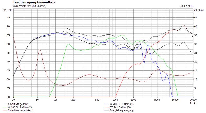Nach ein paar kleineren Korrekturen im Mittel- und Hochtonzweig, wegen der DMS 25, sieht das Ganze eigentlich schon ganz brauchbar aus.