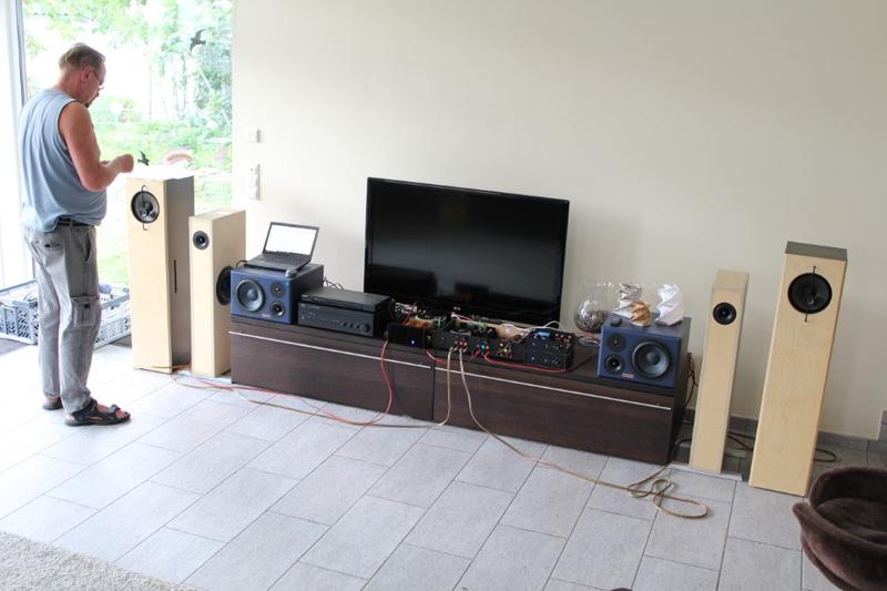 das Kellerprojekt, was ausfallen sollte, kann bei Bedarf mit "niedrigen" Lautstärken gehört werden, … "niedrig" heißt bei mir, trotzdem ganz schön laut, … 115 dB habe ich kurz bevor ich das Bild geschossen habe mit einem rosa Rauschen gemessen, …